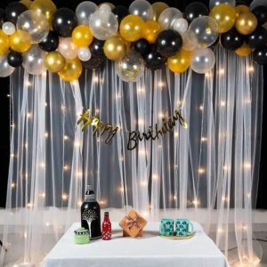 Black Gold Balloon Decoration Set with Curtain Lights | Luxury Birthday & Party Decor